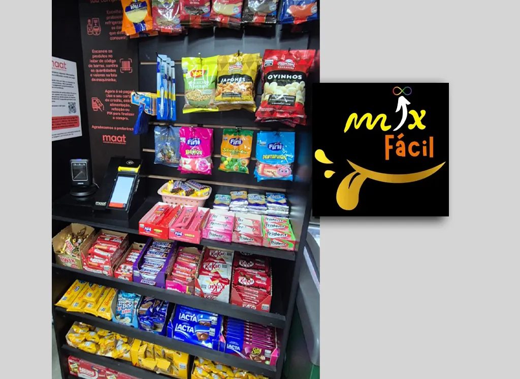 Com a Mix Fácil, você transforma qualquer espaço em um ponto de conveniência, permitindo que as pessoas comprem de forma autônoma e sem filas. Estamos comprometidos em facilitar o acesso a produtos essenciais e oferecer uma experiência de consumo única.